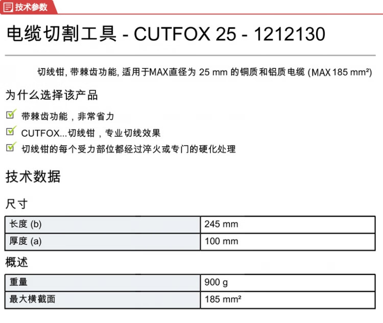 菲尼克斯 切线钳9寸 CUTFOX 25