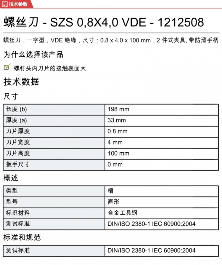 菲尼克斯 螺丝刀 一字型 VDE绝缘 SZS 0 8X4 0 VDE