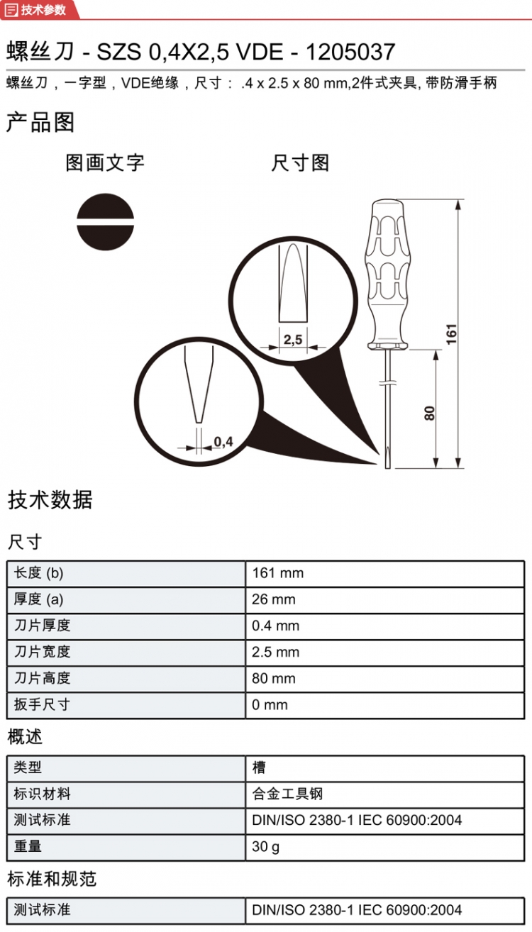 菲尼克斯 一字绝缘螺丝刀 SZS 0 4X2 5 VDE