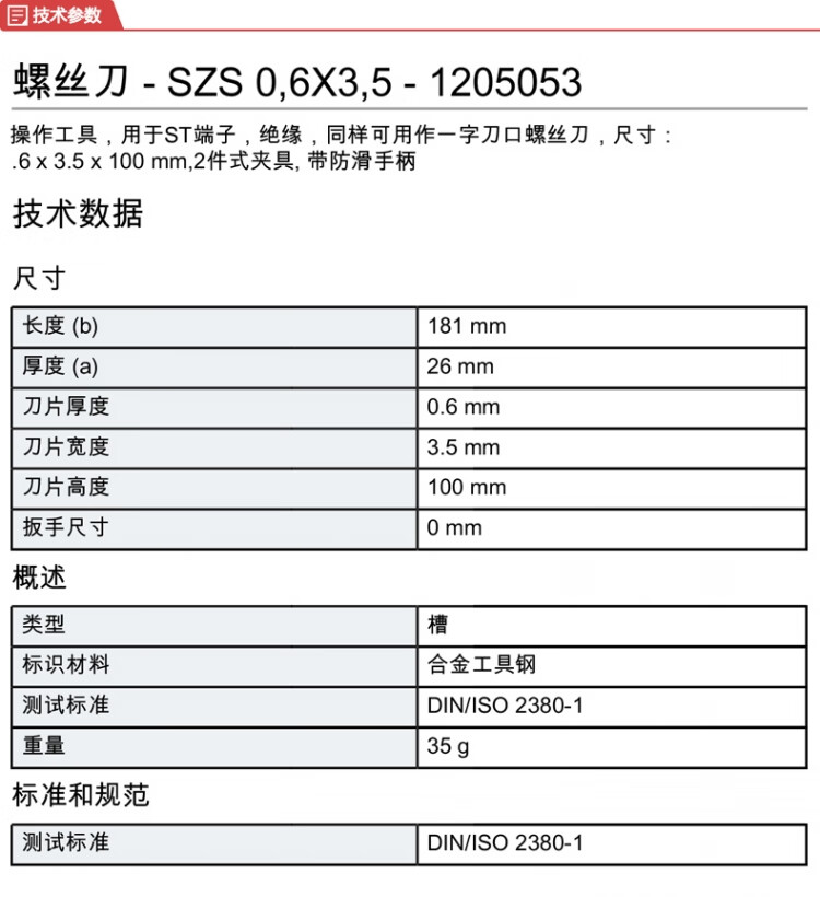 菲尼克斯 螺丝刀 SZS 0.6X3.5