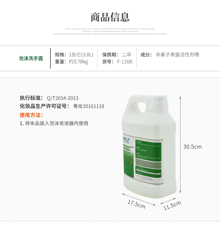 芳菲丽特(FOFILIT)F-116B 泡沫洗手露 酒店车站机场电子泡沫皂液器补充液 3.8L*4瓶