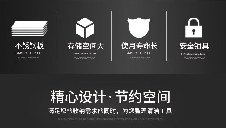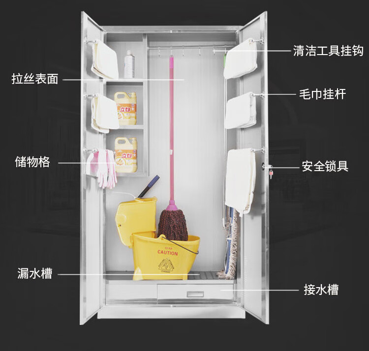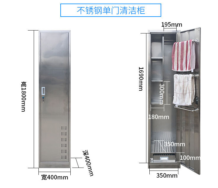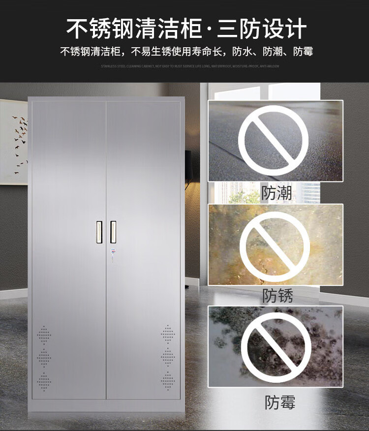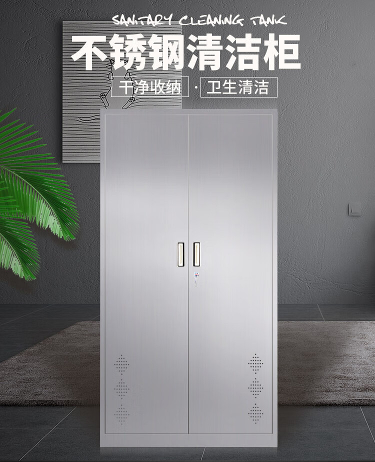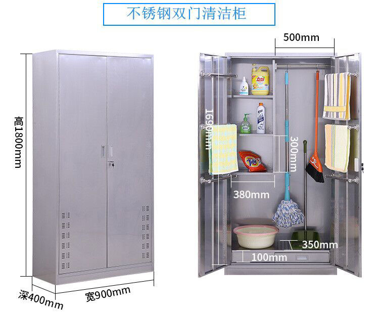 【0.7厚201不锈钢单门】不锈钢清洁柜单双门卫生柜钢制拖把扫帚柜保洁工具收纳柜铁皮带锁