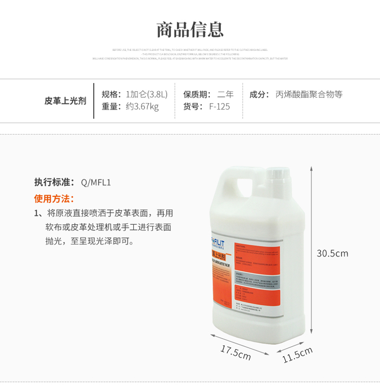 芳菲丽特(FOFILIT)F-125 皮革上光剂 人造皮革真皮皮革上光保养剂 3.8L*4瓶