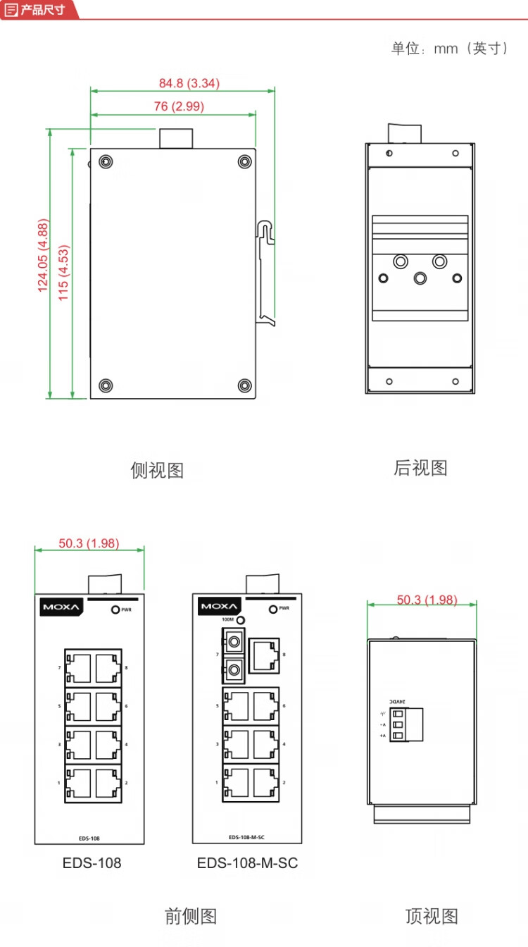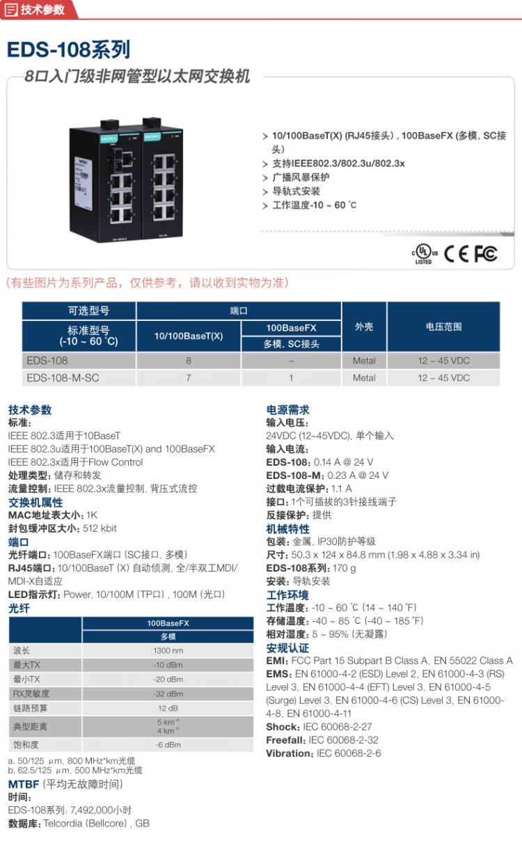 摩莎(MOXA)EDS-108 8口非网管百兆工业以太网交换机
