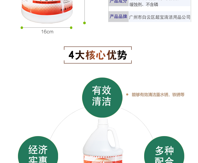 超宝(CHAOBAO)DFH016 水锈净 洗手盆浴室面盆瓷砖除水锈 3.8L*4瓶
