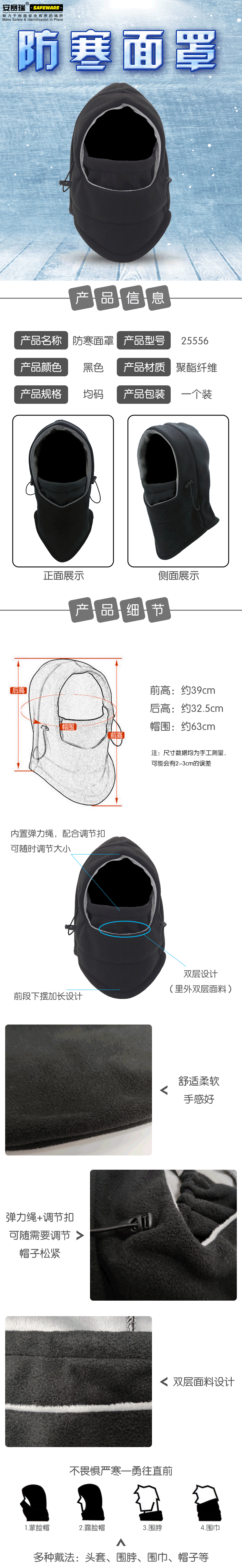 安赛瑞 防寒面罩保暖防风帽 防风脖套保套护耳保暖 加厚面罩抓绒围脖帽 黑色 25556
