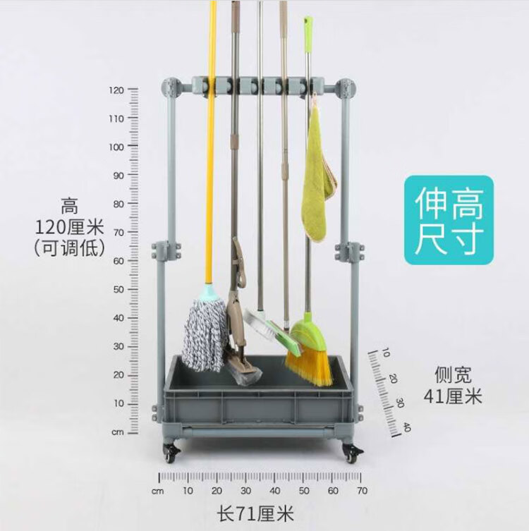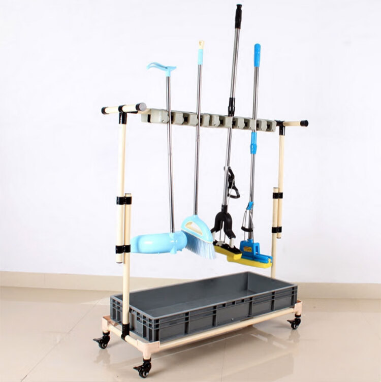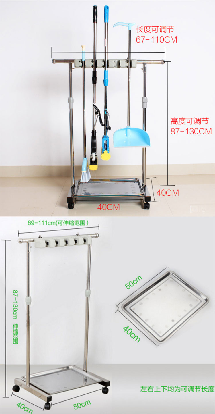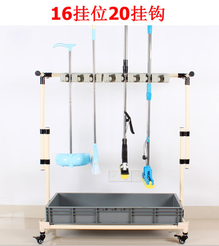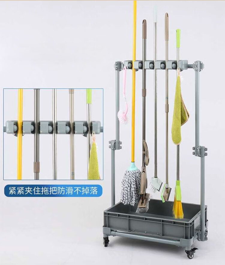 Homeglen 可移动拖把架落地式挂钩夹子架子扫把架不锈钢挂架 不锈钢5挂6钩