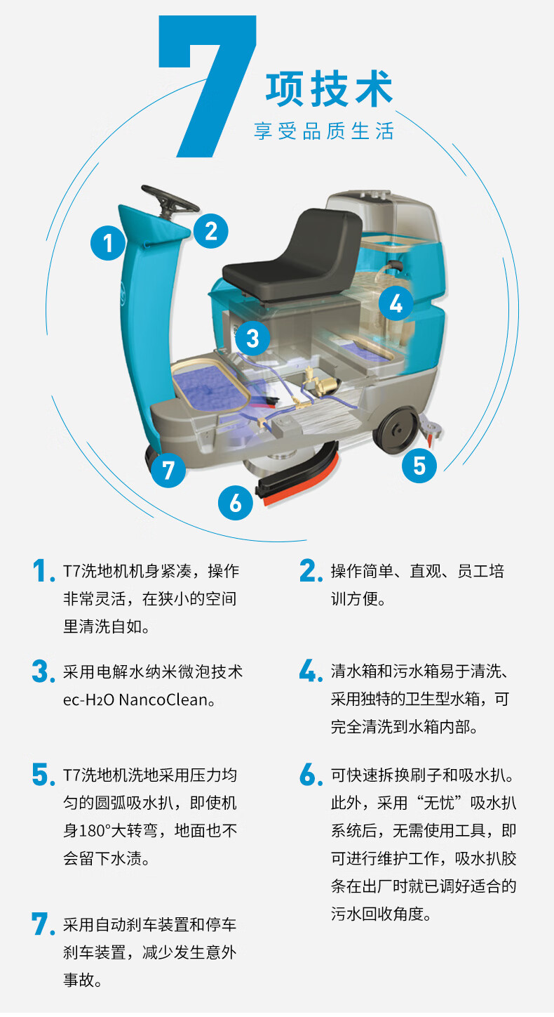 坦能驾驶式洗地机T7工厂工业车间洗地车商场超市车库拖地机全自动商用地坪清洗刷地机(锂电池版)