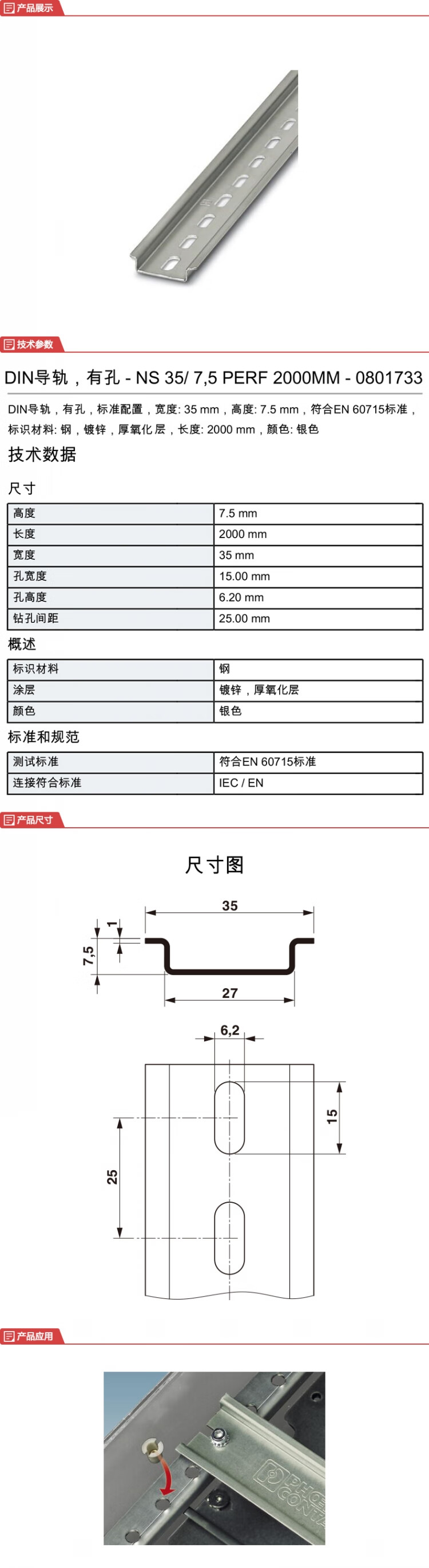 菲尼克斯 导轨 NS 35/7.5 PERF 2000MM