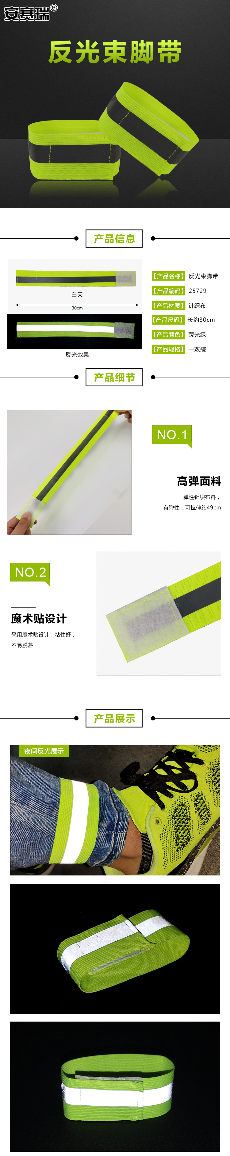 安赛瑞 反光束腿带 工程施工裤腿绑带 夜间反光安全警示带 加宽束腿松紧带 一双装均码 25729