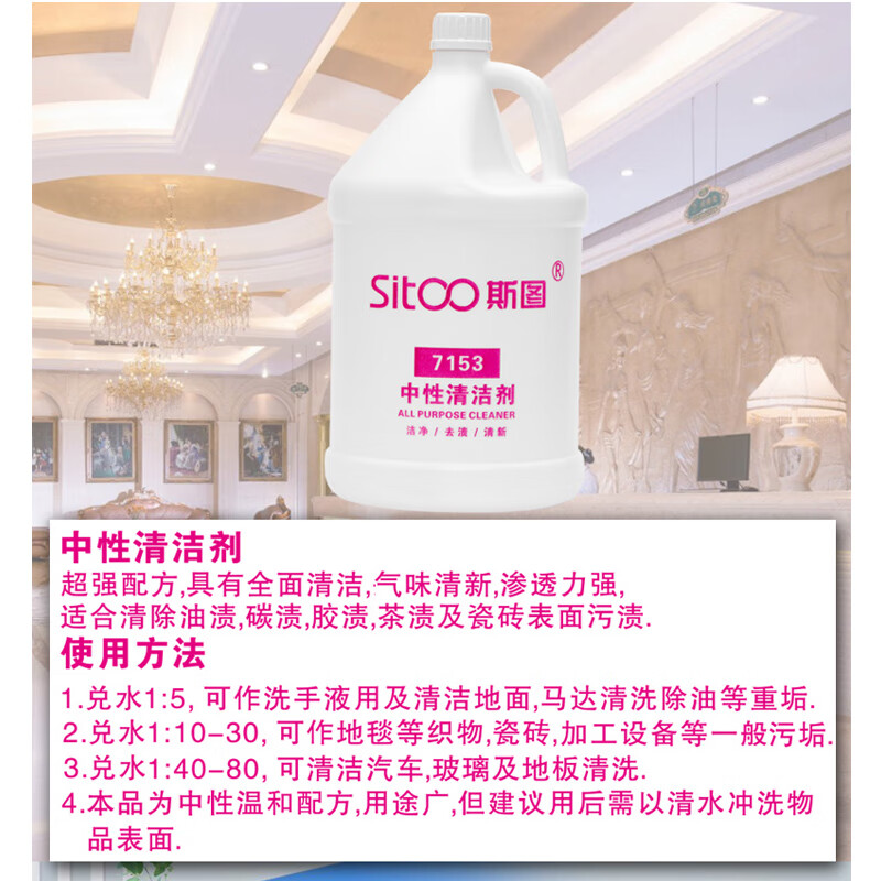 斯图中性清洁剂酒店地板瓷砖去污清洗剂7153适合公司单位酒店宾馆企业3.78升中性清洁剂(4桶装整箱)