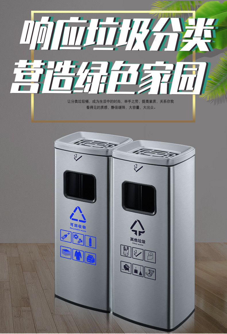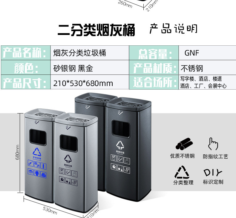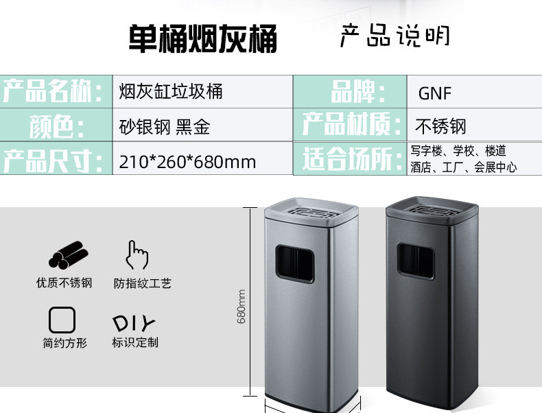 GNF【沙钢单桶】酒店大堂不锈钢分类垃圾桶立式带烟灰缸办公走廊电梯口座地烟灰桶
