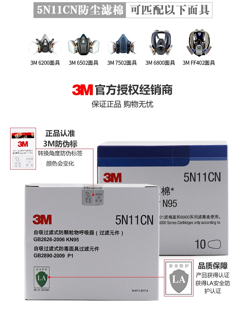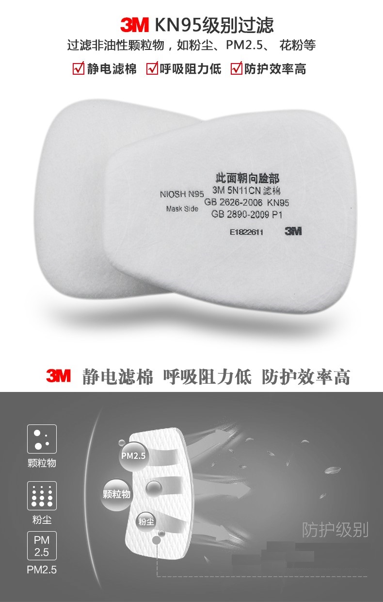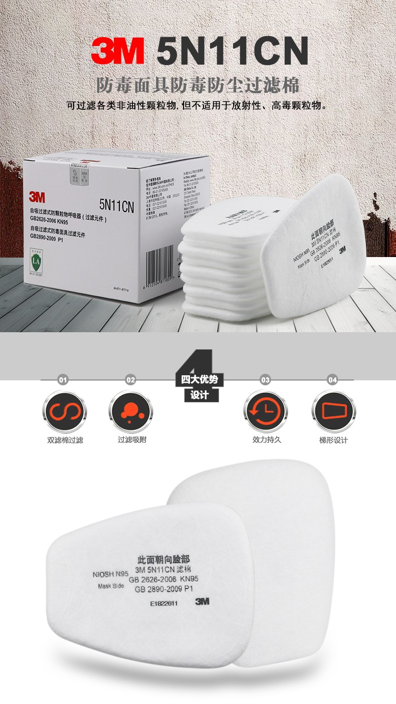 3M 5N11 过滤棉 6200和7502 防毒面具配件 N95滤棉 滤毒棉 10片/盒 4盒/件