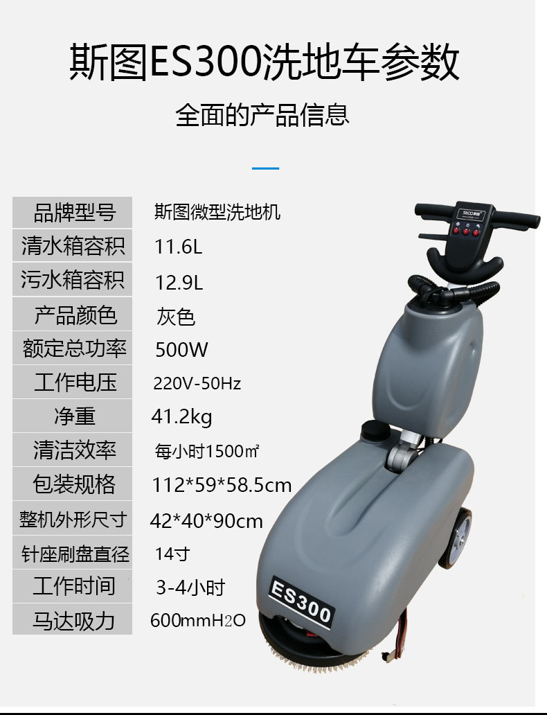 斯图手推电瓶式刷地机洗地机小型多功能超市商场候车厅电动地面擦地机 ES300电瓶式小型手推洗地车(高性能版)