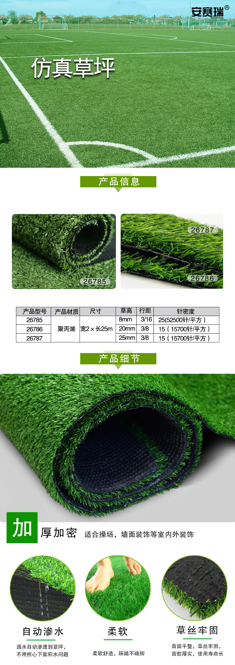 安赛瑞 仿真草坪 满铺人造草坪 25mm 50平 工程围挡塑料草皮 幼儿园楼顶工程人工假草皮26787