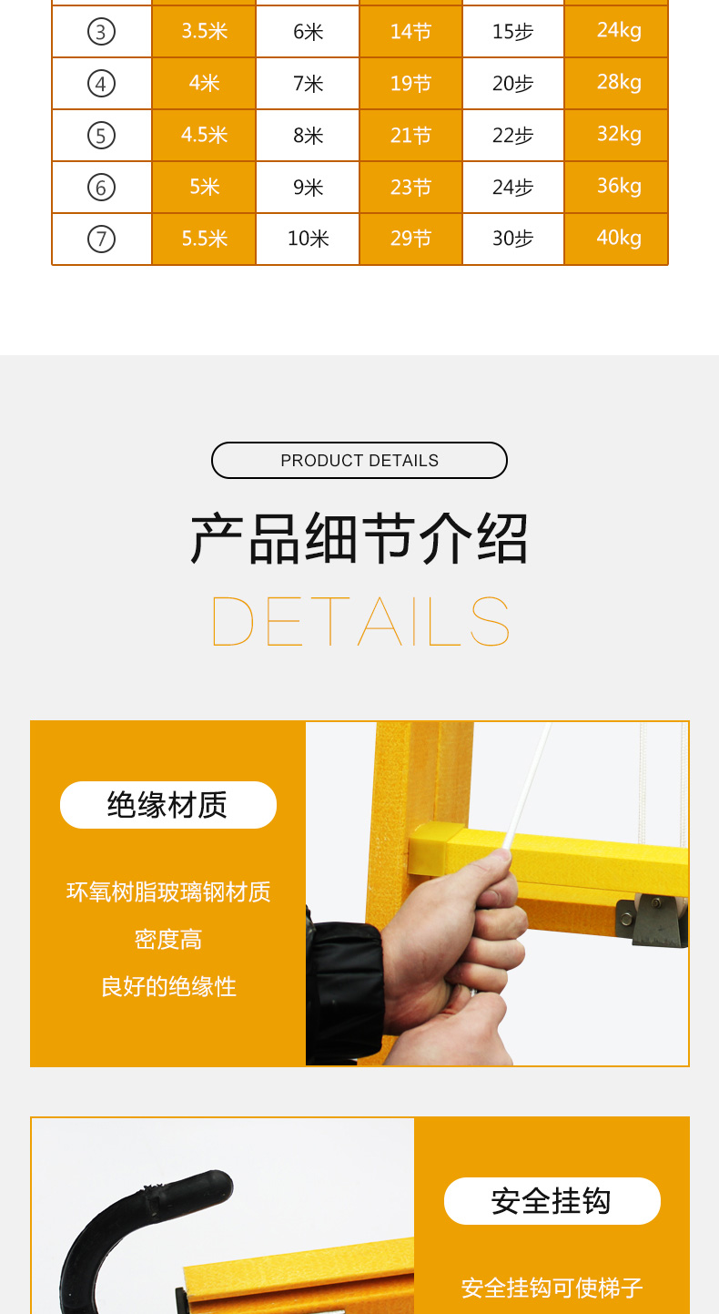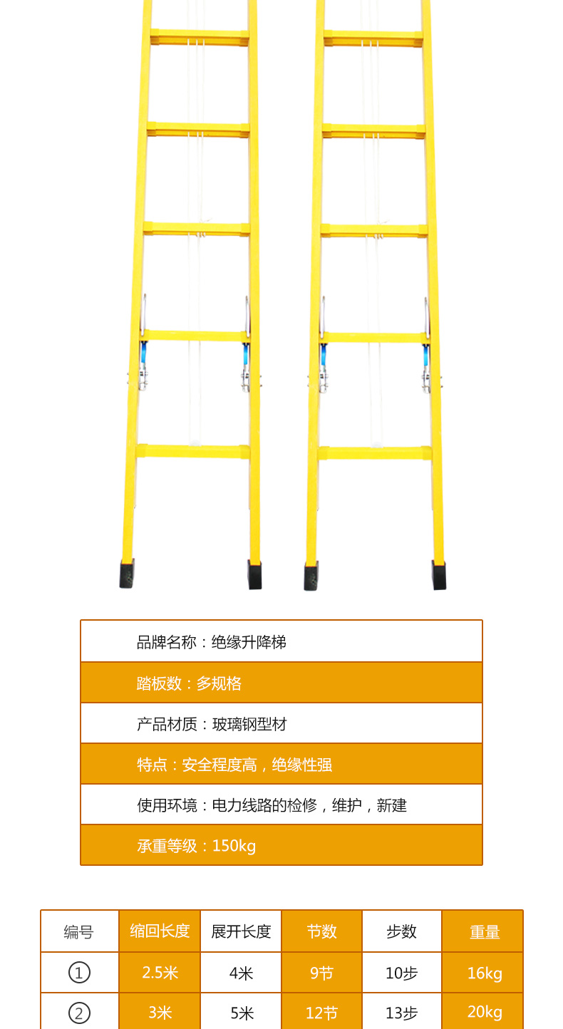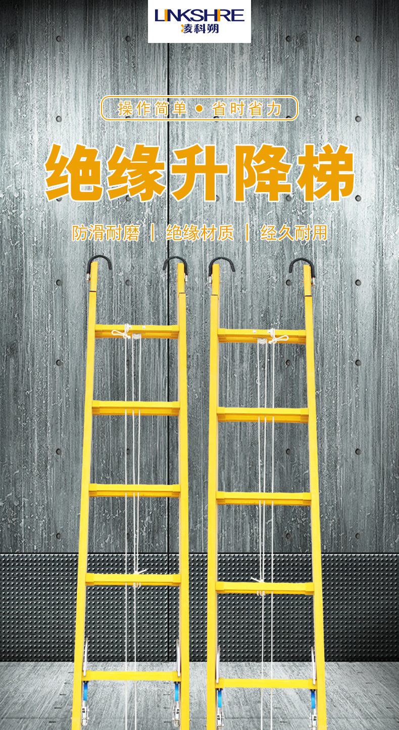 凌科朔(LINKSHIRE)6米绝缘升降梯 绝缘梯 玻璃钢 电力电工绝缘升降梯3,5米展开6米