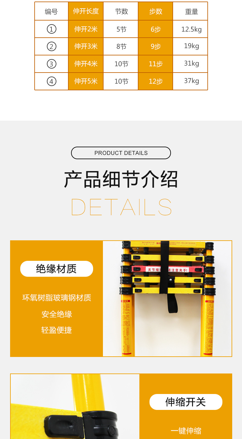 凌科朔(LINKSHIRE)2米绝缘人字伸缩梯 绝缘梯 玻璃钢 电力电工绝缘人字梯2米