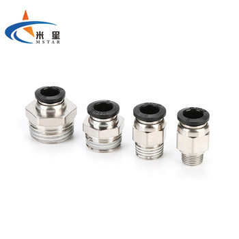 米星 气管外螺纹快速接头 PC外螺纹直通 快插气动接头 黑色 PC 16-03(10个)