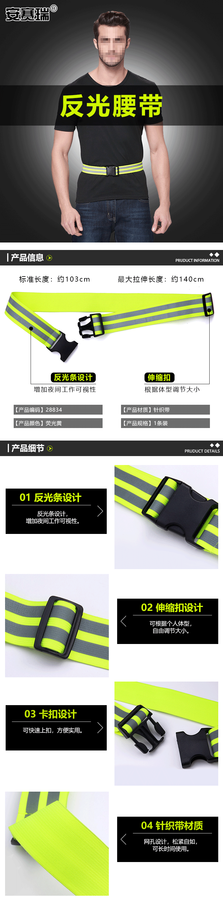 安赛瑞 反光腰带 交通执勤安全反光腰带 户外夜间高亮骑行腰带 环卫安全警示腰带 荧光黄 28834