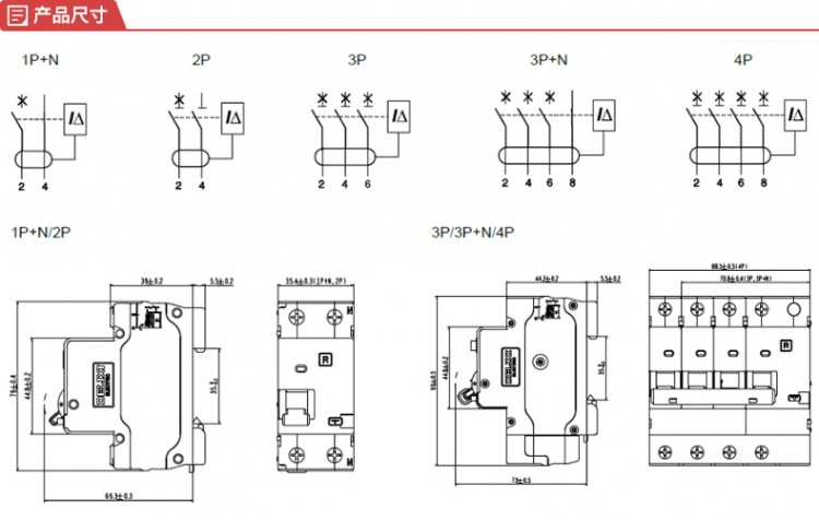 德力西电气 登峰系列小型漏电保护断路器DZ47vLE上进线1P+N C型 63A 30mA AC型