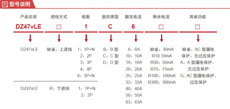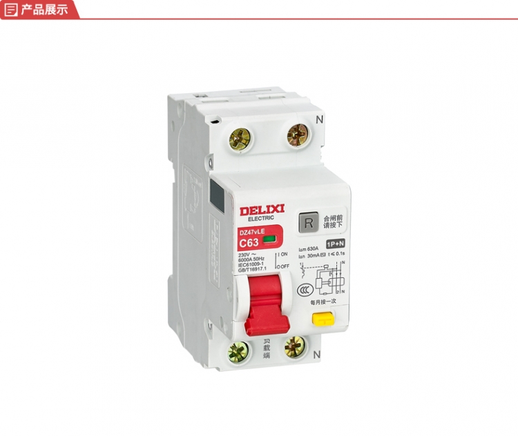德力西电气 登峰系列小型漏电保护断路器DZ47vLE上进线1P+N C型 25A 30mA AC型