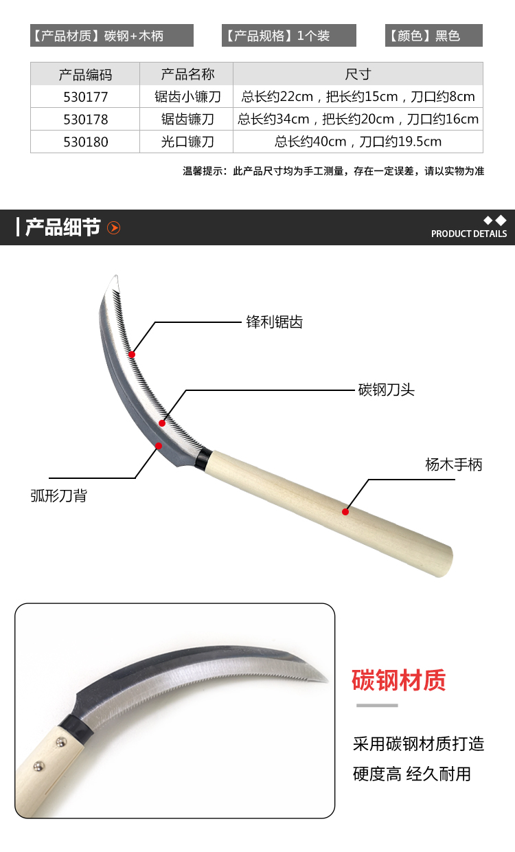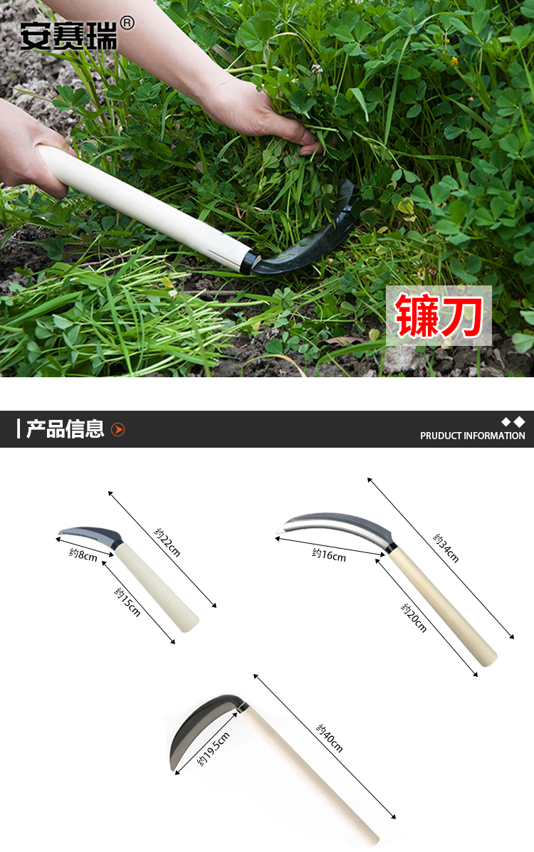 安赛瑞 光口镰刀 扇形除草割草镰种菜小麦收割刀 园艺农用工具 长约40cm 530180