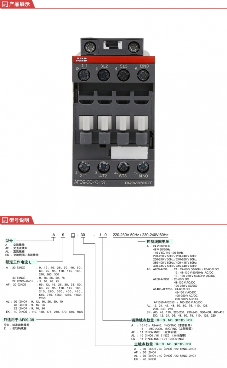 ABB 交/直流通用线圈接触器 AF09-30-10-13*100-250V AC/DC 10239756