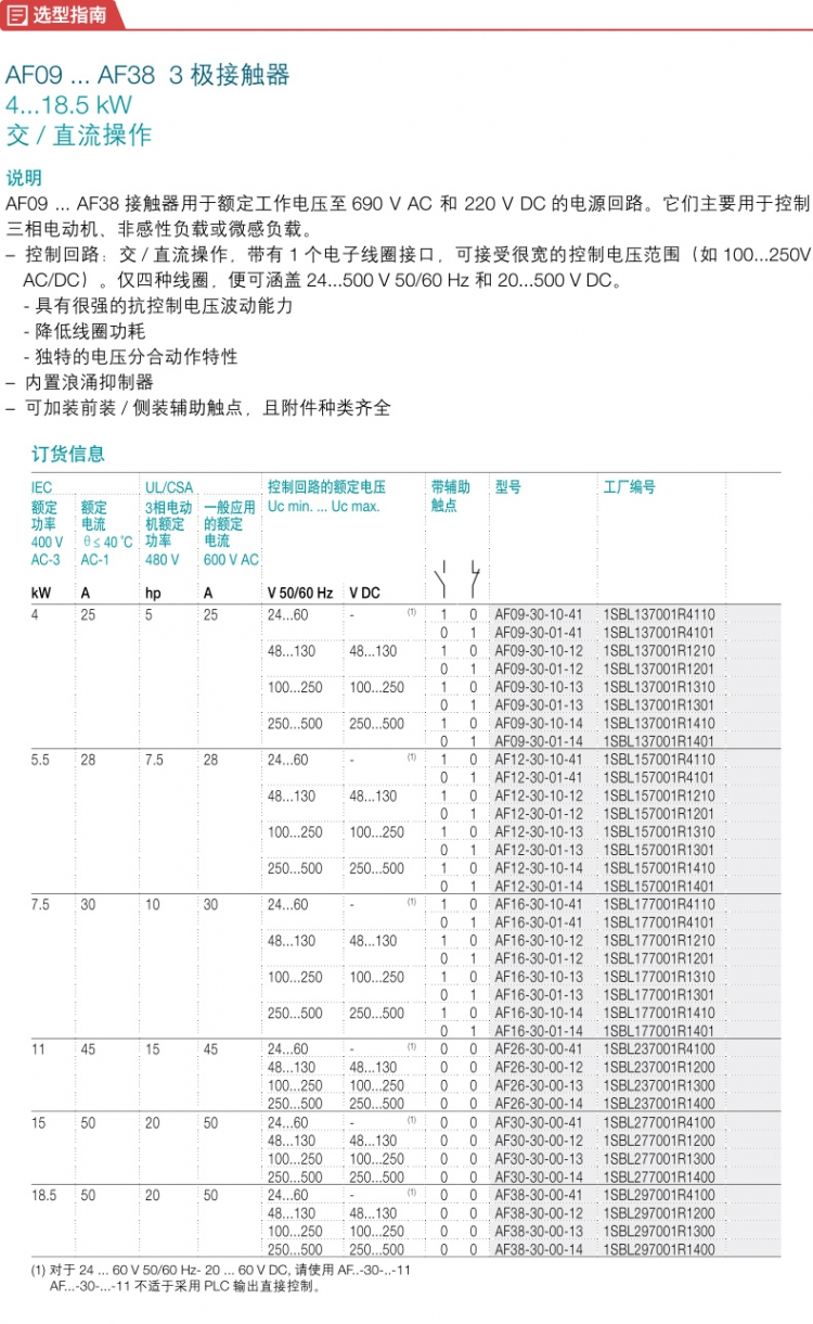 ABB 通用型接触器;AF09-30-10-11*24-60V AC/DC