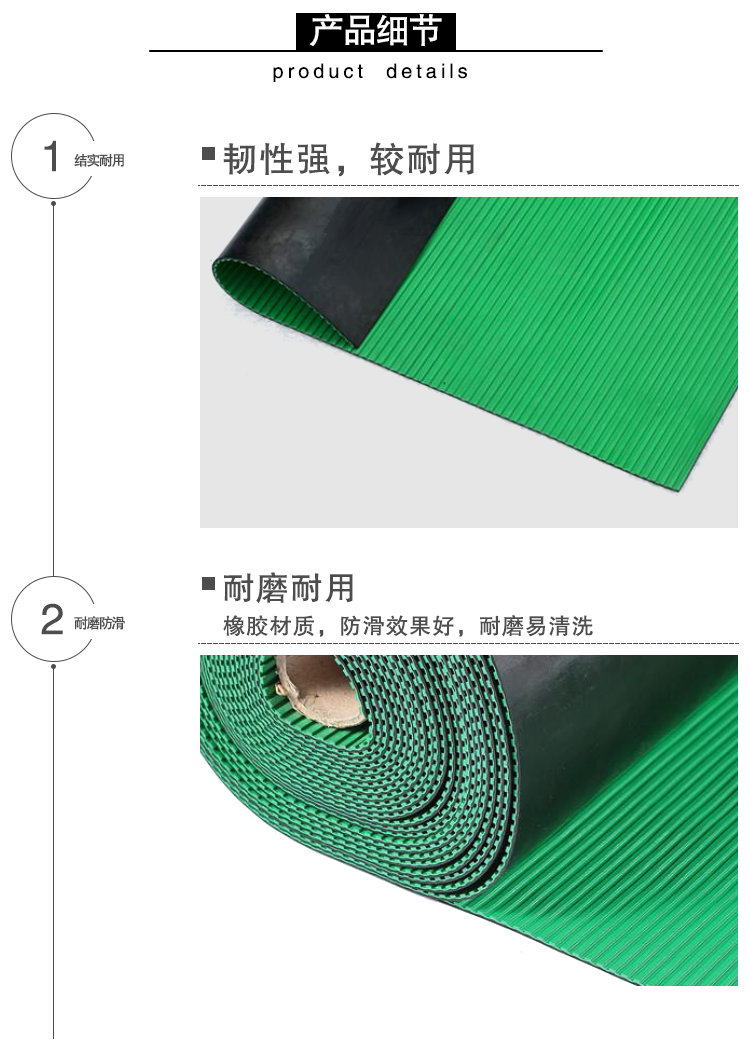 安赛瑞 橡胶防滑地垫 1×10m×3mm 仓库车间走廊厨房橡胶防滑耐油地垫 工业满铺地垫 绿条纹款27129