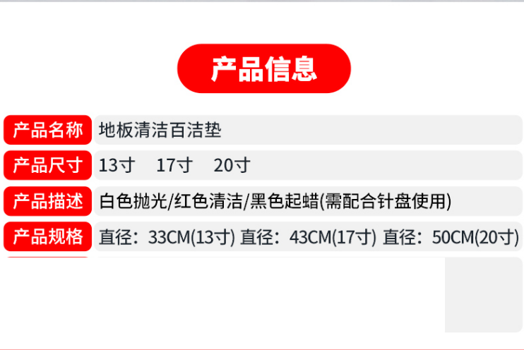 益美得 洗地机去污抛光垫打蜡垫 13寸红色百洁垫一盒5片 洗地 洗地毯