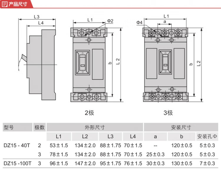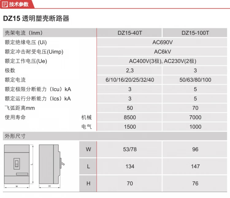德力西电气 塑壳断路器 DZ15-100T/3901 100A 透明