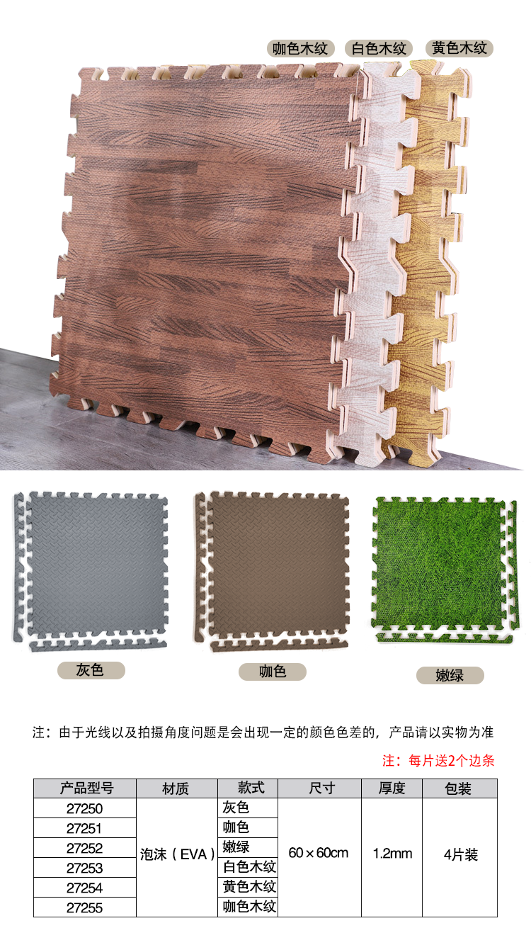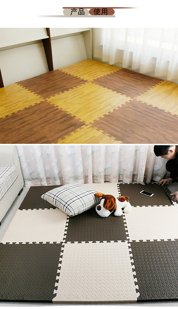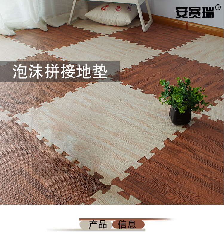 安赛瑞 泡沫拼接地垫 木纹拼块地垫套装防滑地垫 60×60cm 4片装 道馆武术摔跤脚垫 咖色木纹 27255