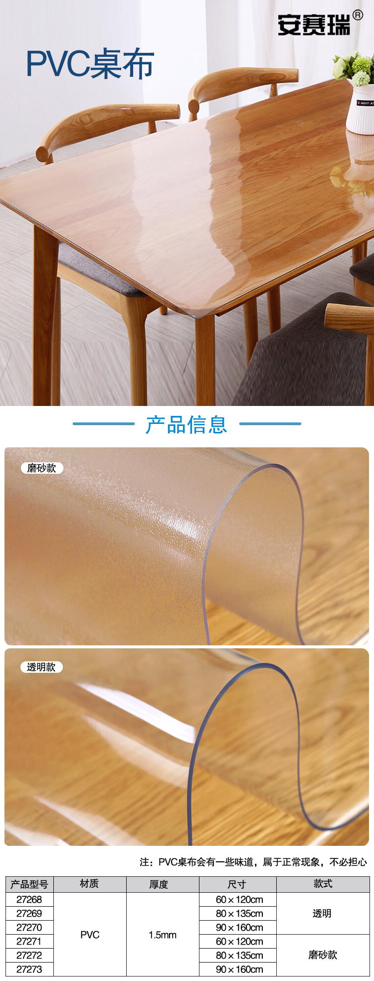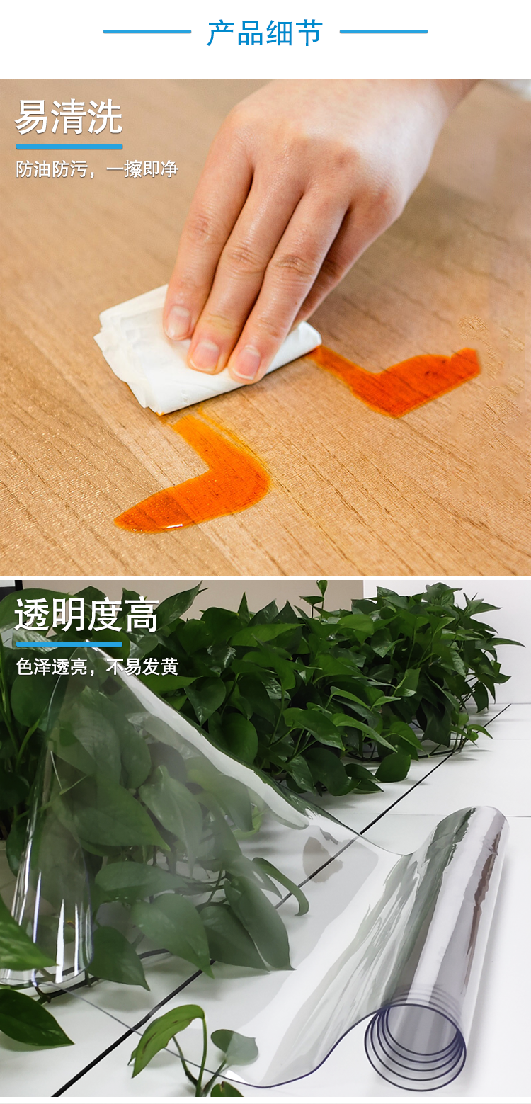 安赛瑞 PVC桌布 防水防烫防油免洗塑料透明软玻璃饭桌胶垫 宽60cm长120cm 27268