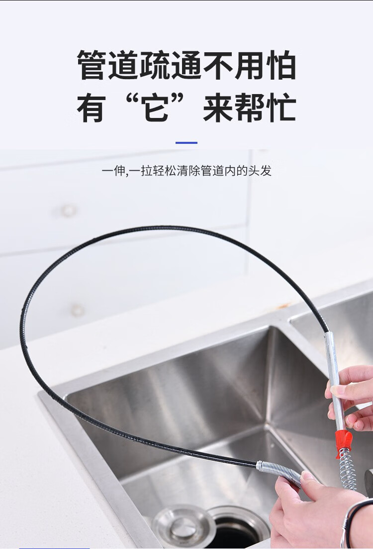 庄太太【黑色0.9米】厨房厕所下水道管道堵塞疏通异物夹抓取钩