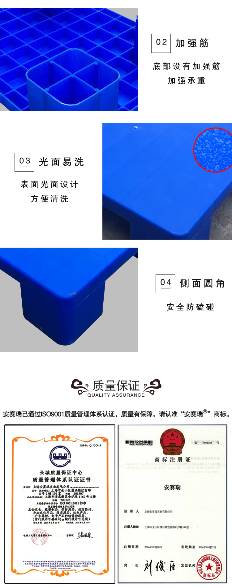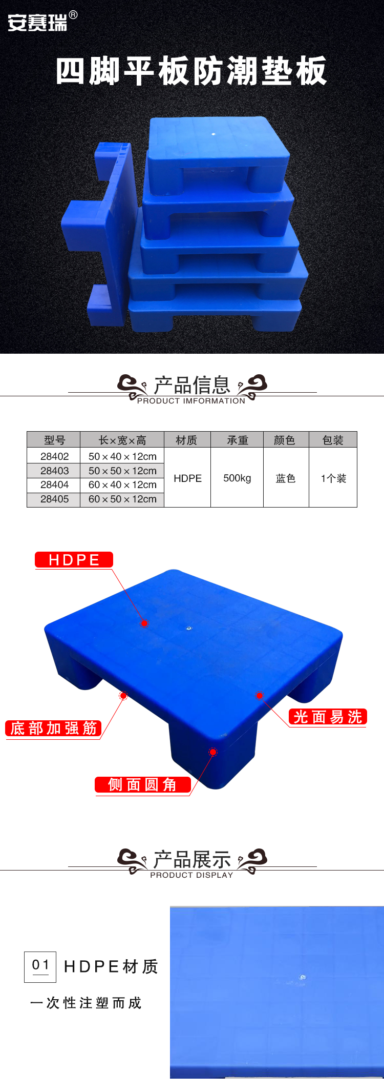 安赛瑞 四脚平板防潮垫板 超市仓储托盘叉车栈板地垫 承重约500kg 60×40×12cm 28404