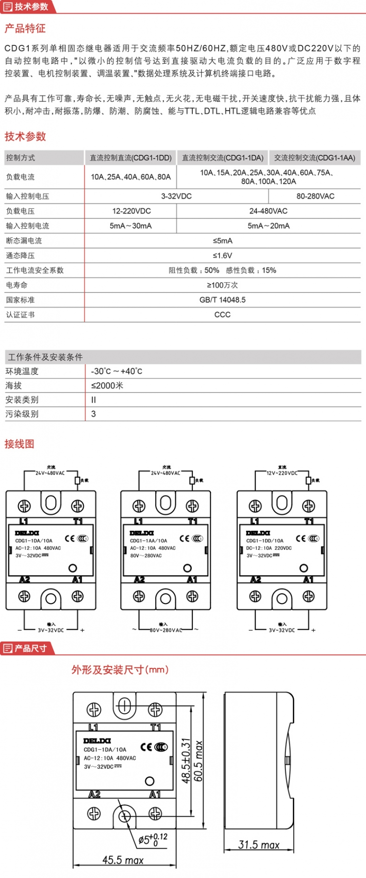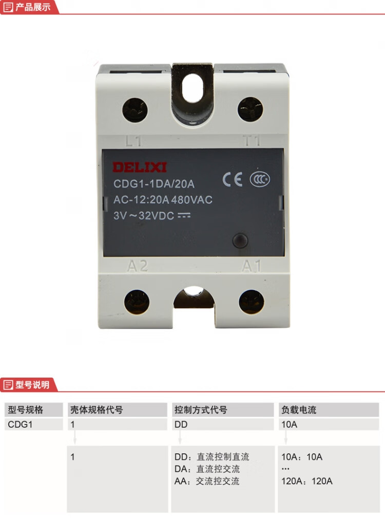 德力西电气 单相固态继电器CDG1-1DA 20A 微弱电流