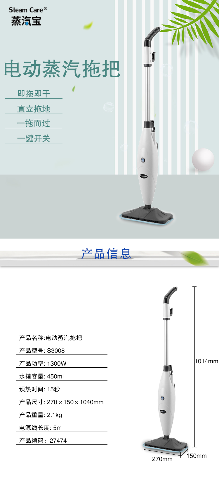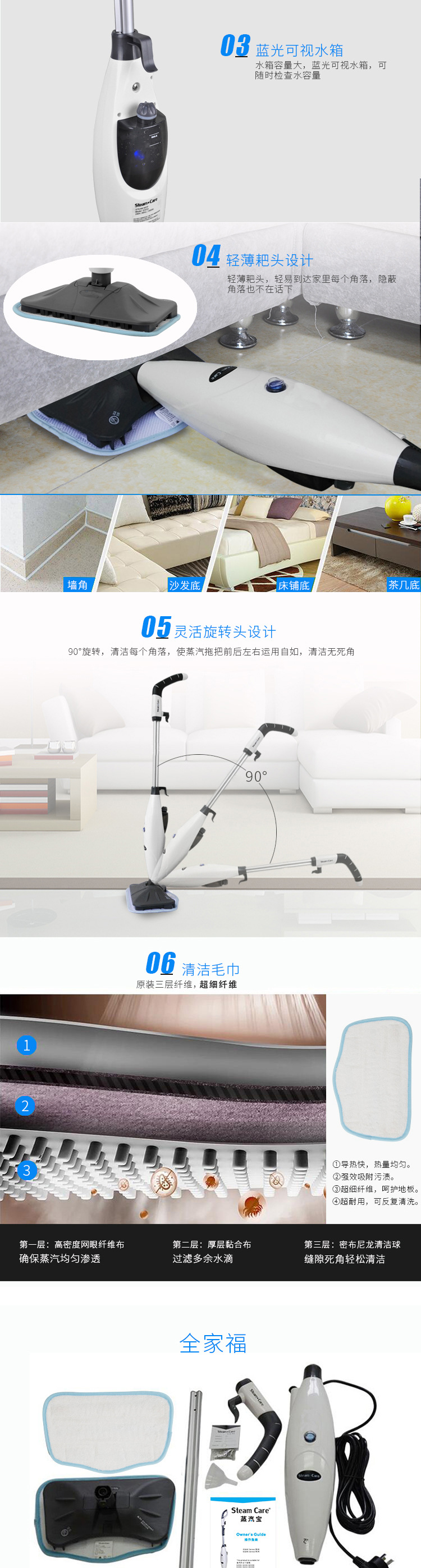 蒸汽宝SteamCare 高温蒸汽拖把 多功能手持拖地机 非无线电动手持清洁机 S3008 27474