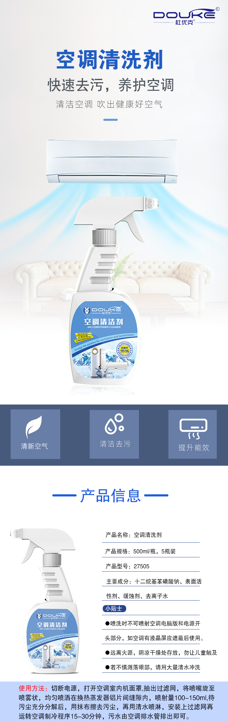杜优克 制冷机清洗剂 500ml×5瓶 制冷机清洁剂制冷机除垢清洁剂27505