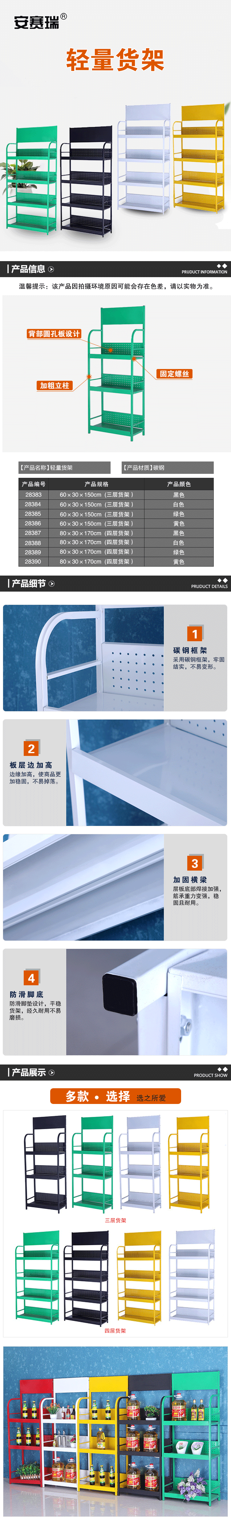 安赛瑞 轻型小货架(四层)机油配件展示架 超市便利店置物架展销架 润滑油金属货架 黄色 28390