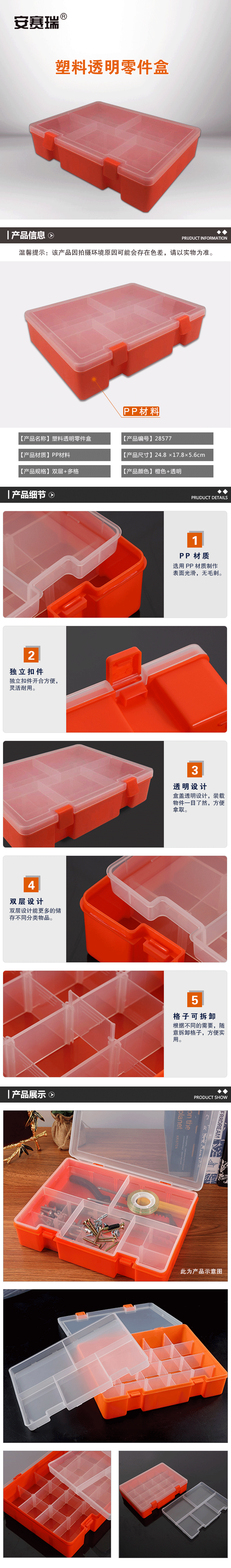 安赛瑞 塑料零件盒 工具分类箱 电子元器件收纳存储盒 五金工具分类存储盒 24.8 ×17.8×5.6cm 两层橙色 28577