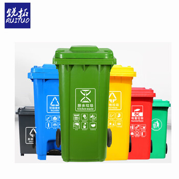锐拓户外加厚物业小区环卫分类垃圾桶公用室外塑料带盖酒店大号商用垃圾桶240升