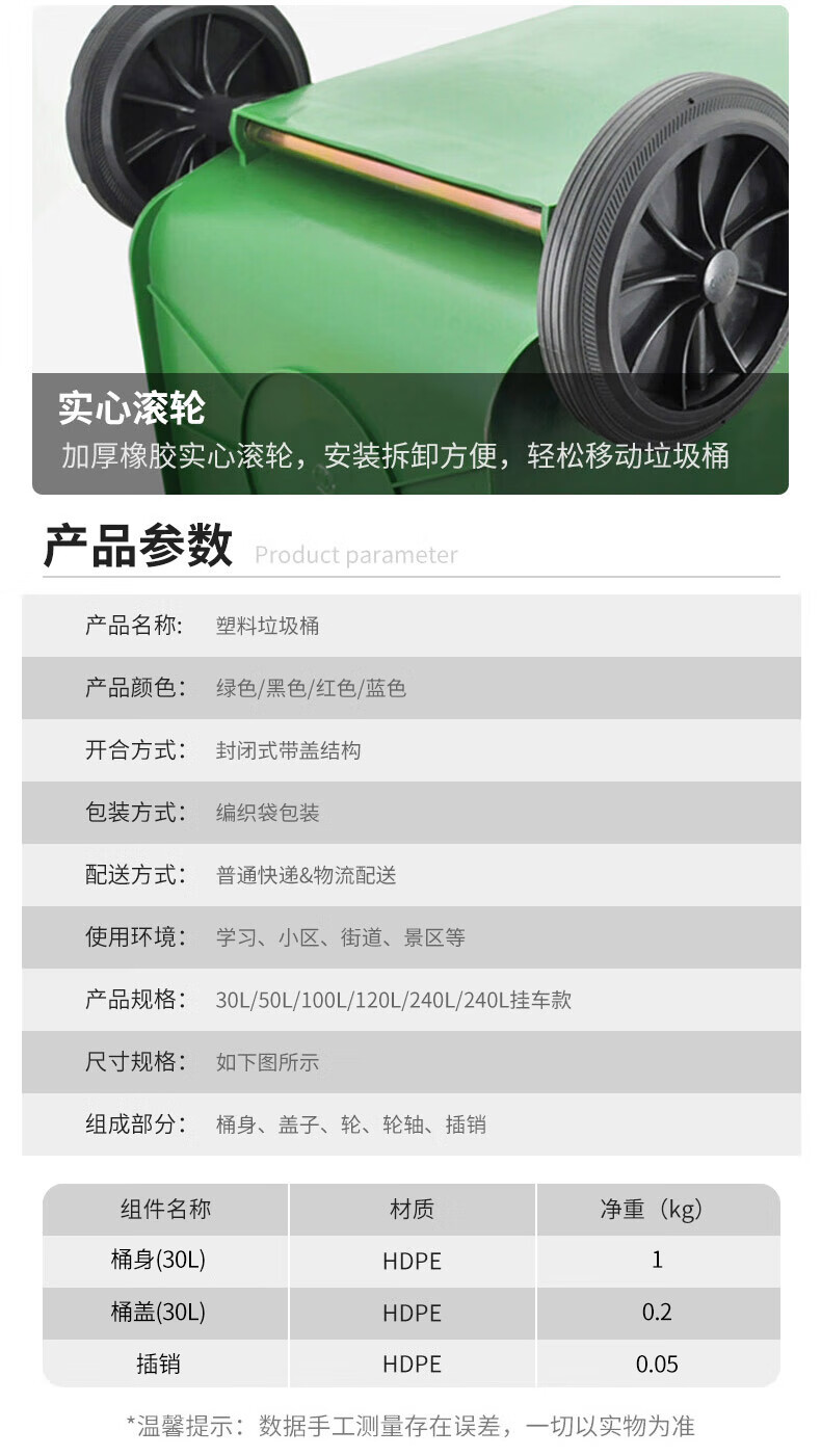 科力邦(Kelibang) 240L户外垃圾桶 大号加厚商用塑料环卫垃圾桶带盖轮工业小区物业翻盖果皮箱 蓝色 单个