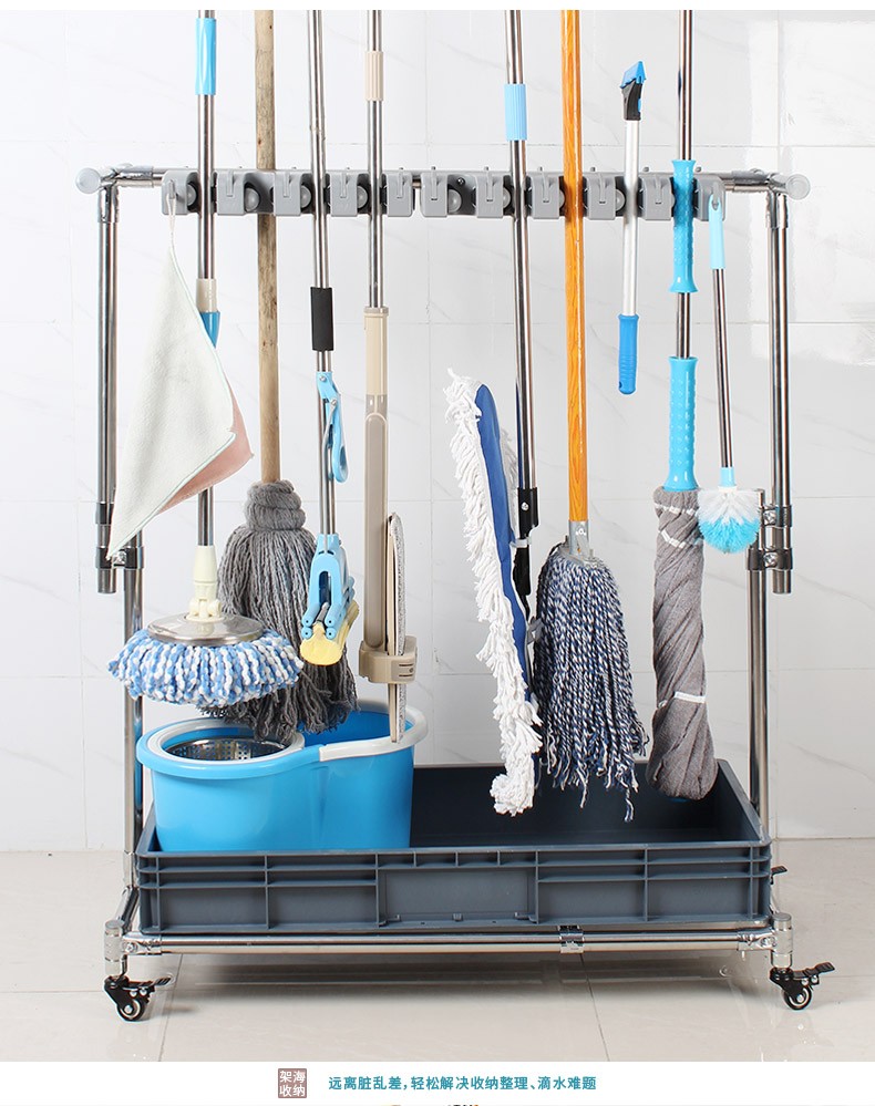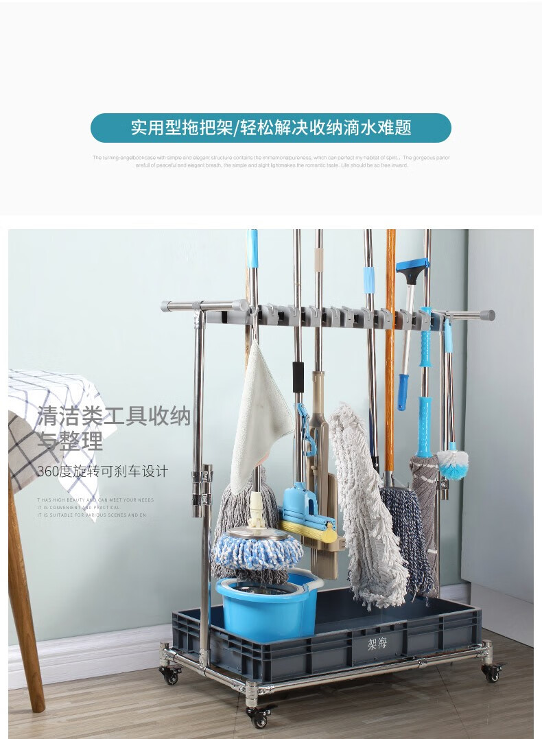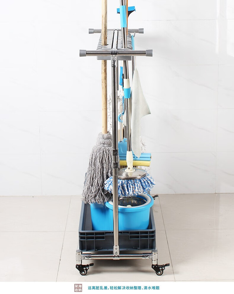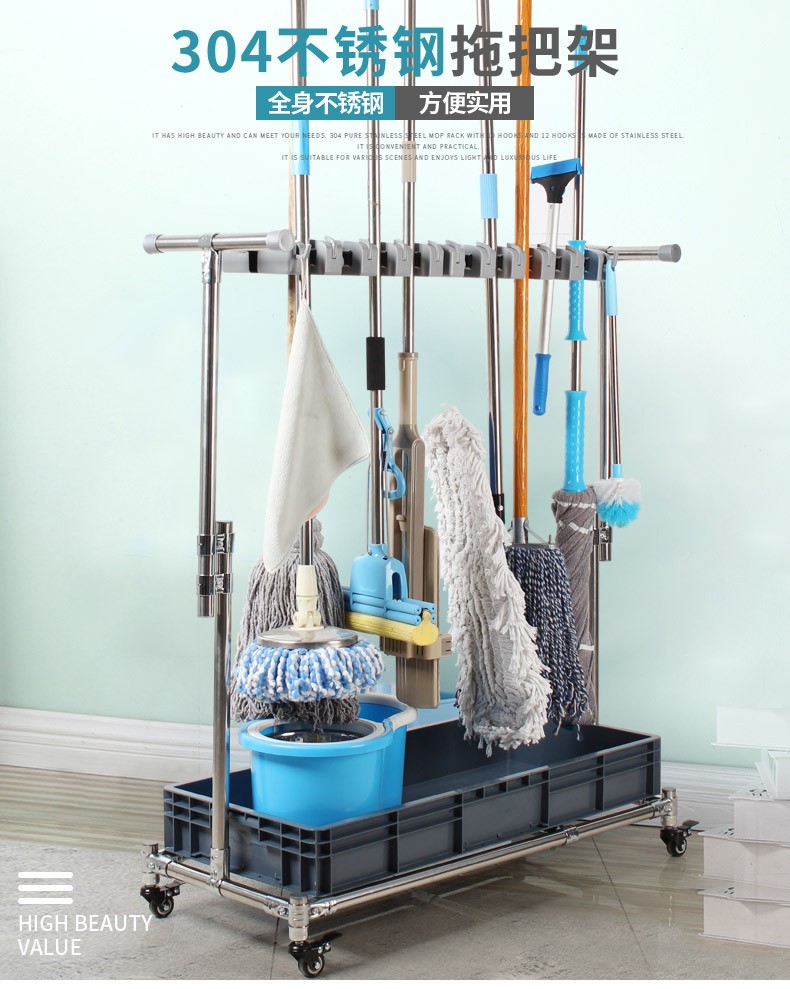 架海304不锈钢可移动拖把架18挂22钩落地式置物架清洁工具收纳架子扫把墩布架