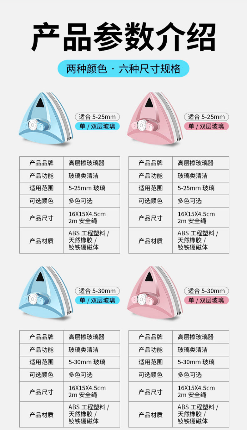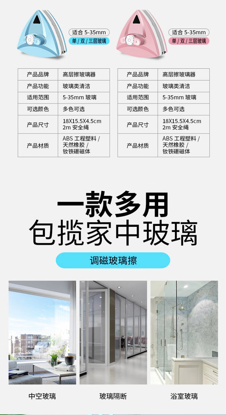 领象 擦玻璃双层中空高楼双面玻璃擦清洁器三层加厚玻璃刮水器刷清洗工具高层擦窗器强磁擦【5-30MM单双层】