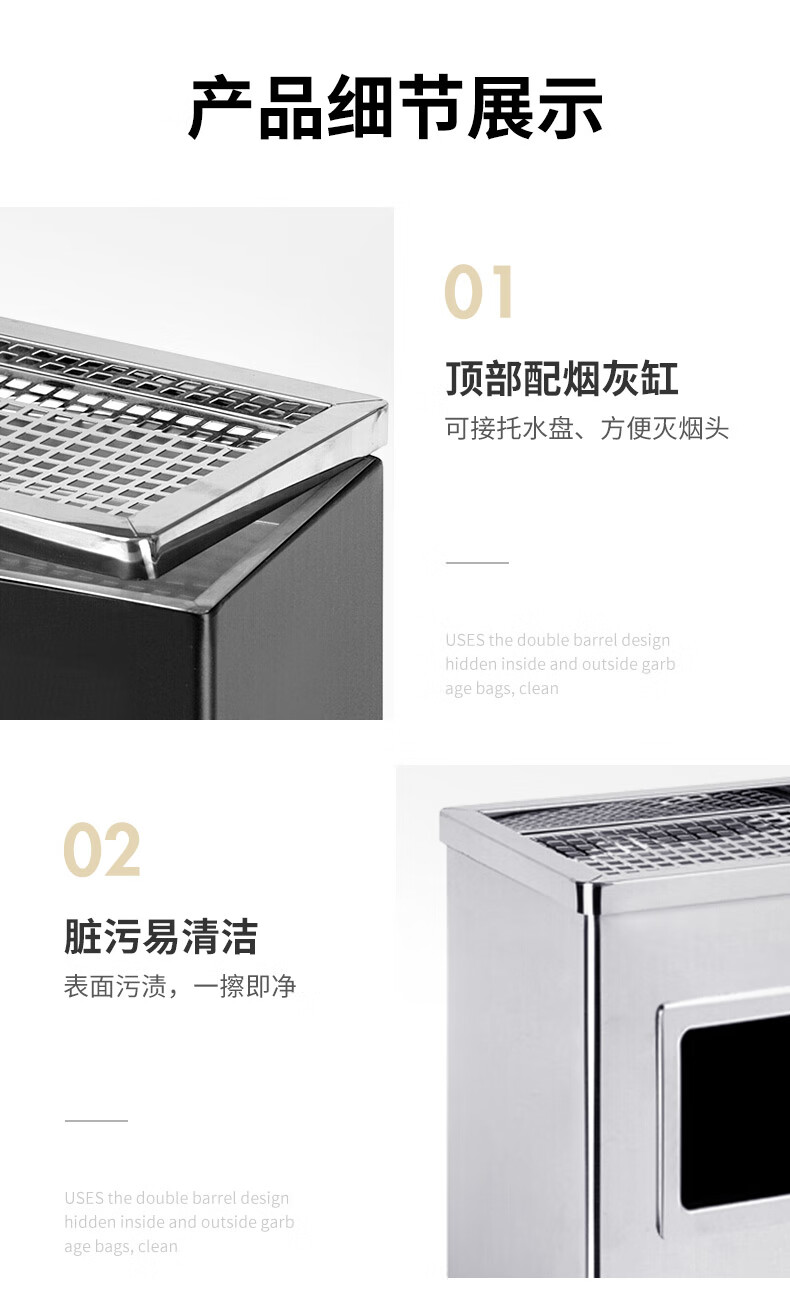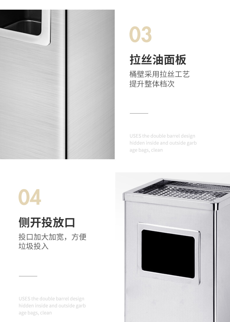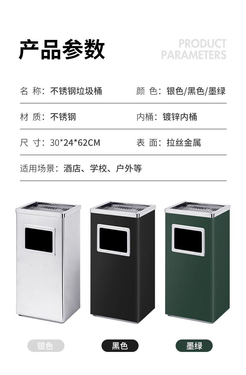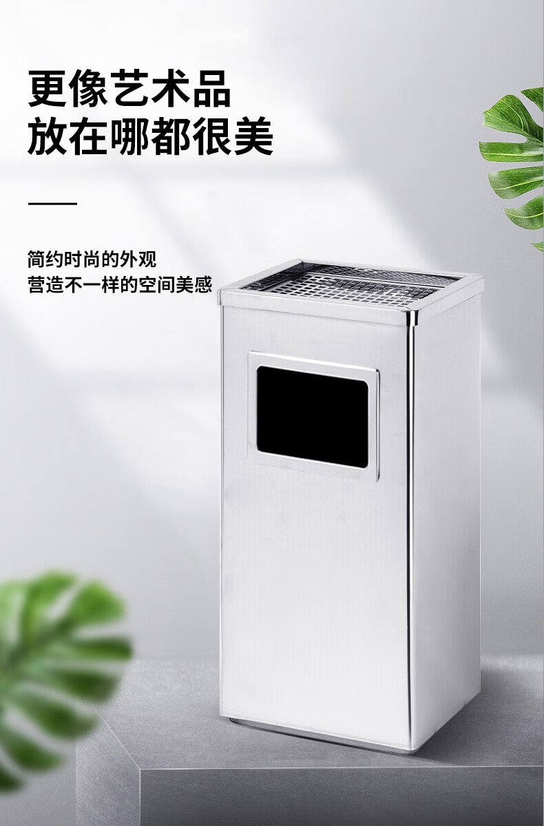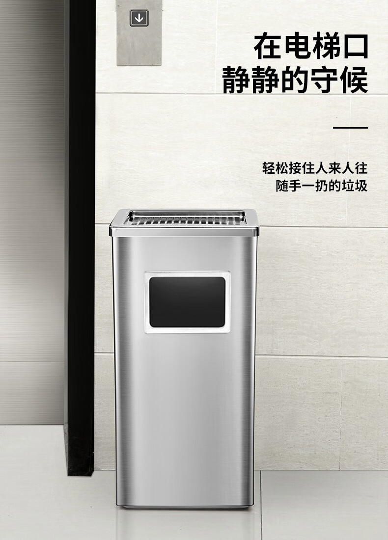 领象 不锈钢烟灰缸酒店大堂垃圾桶立式宾馆带内桶商场桶箱电梯口垃圾桶吸灰桶烟灰柱灭烟桶 长方形 银色
