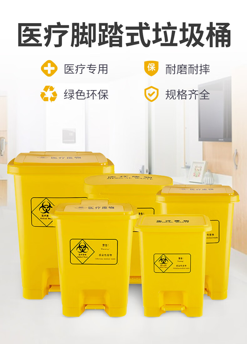 领象 医疗废物垃圾桶医黄色垃圾桶大号带盖脚踏黄色污物桶医疗 垃圾桶商用垃圾桶60L