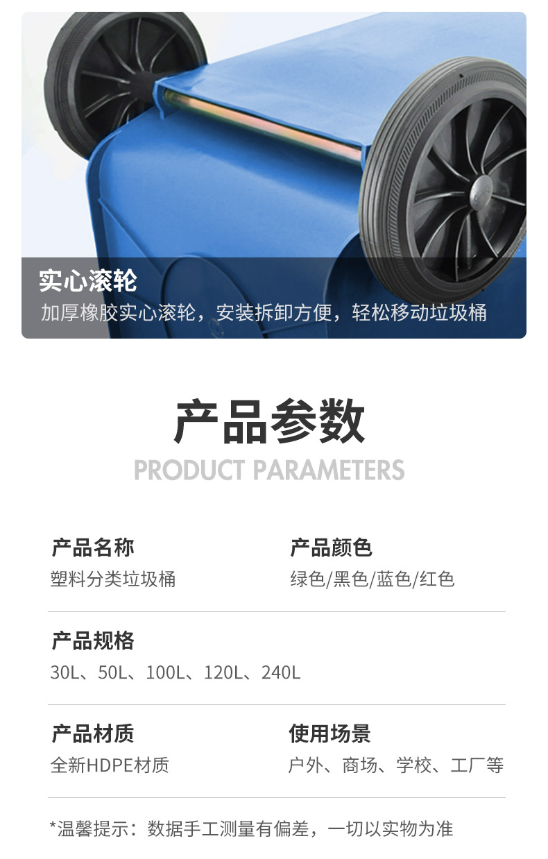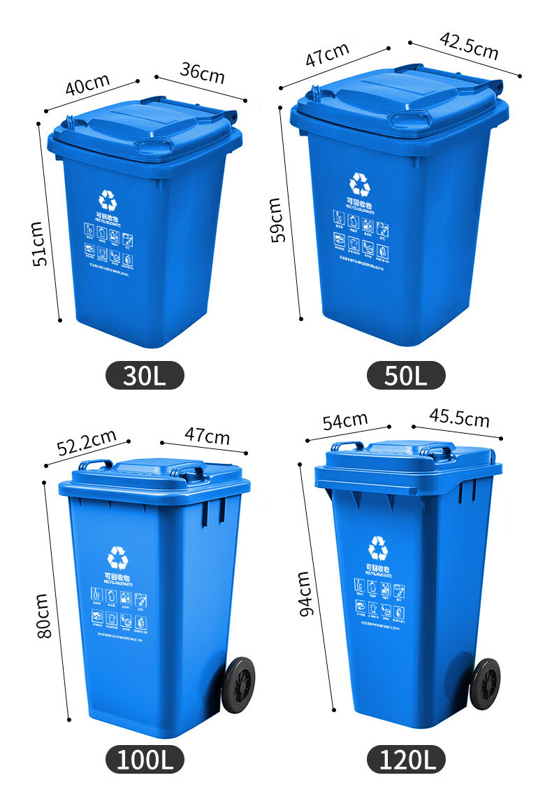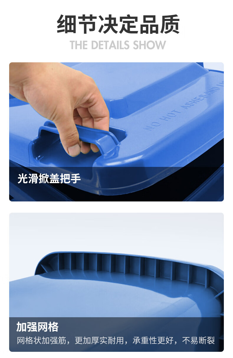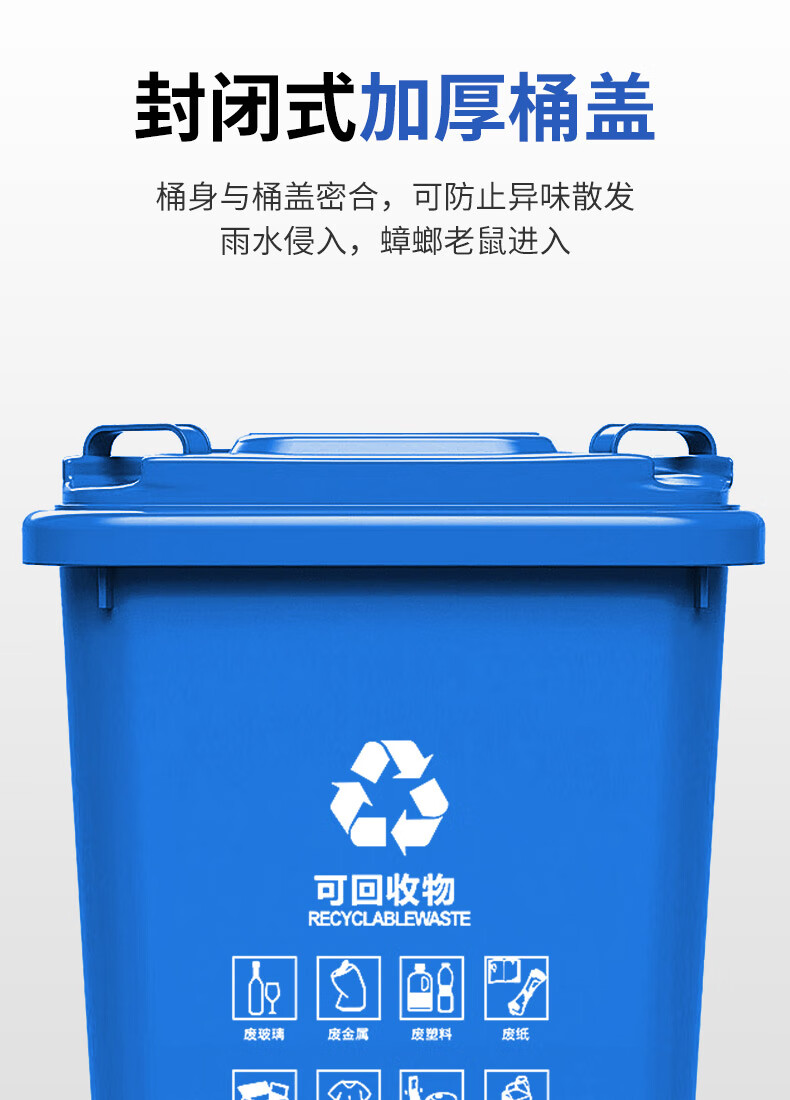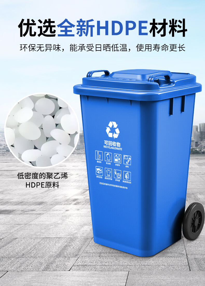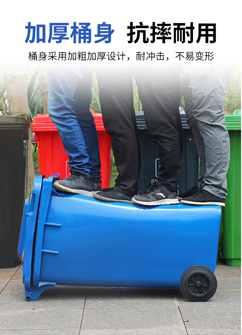科力邦(Kelibang) 户外垃圾桶 大号加厚120L商用塑料环卫垃圾桶带盖轮工业小区物业翻盖果皮箱 蓝色 单个