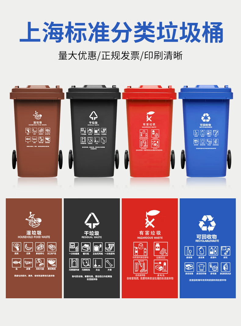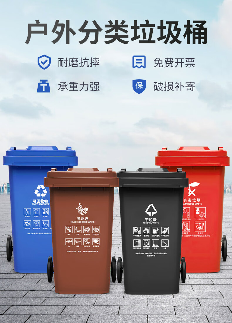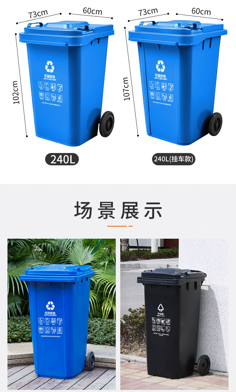 领象 上海分类垃圾桶 加厚户外环卫垃圾桶大号带盖小区物业酒店学校大垃圾桶 黑色240L 干垃圾