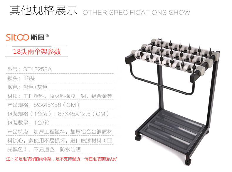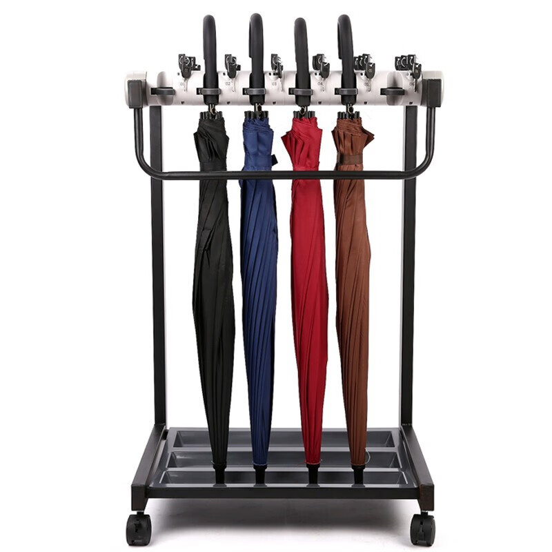 斯图带锁雨伞架防丢雨伞安全存放架加厚铝合金18头雨伞架+18把单人黑色雨伞