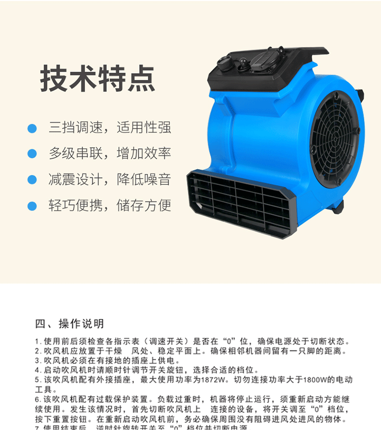 斯图小型吹地机鼓风机除潮湿机地面地毯吹干机可串联三档风速7003小型(单冷型)